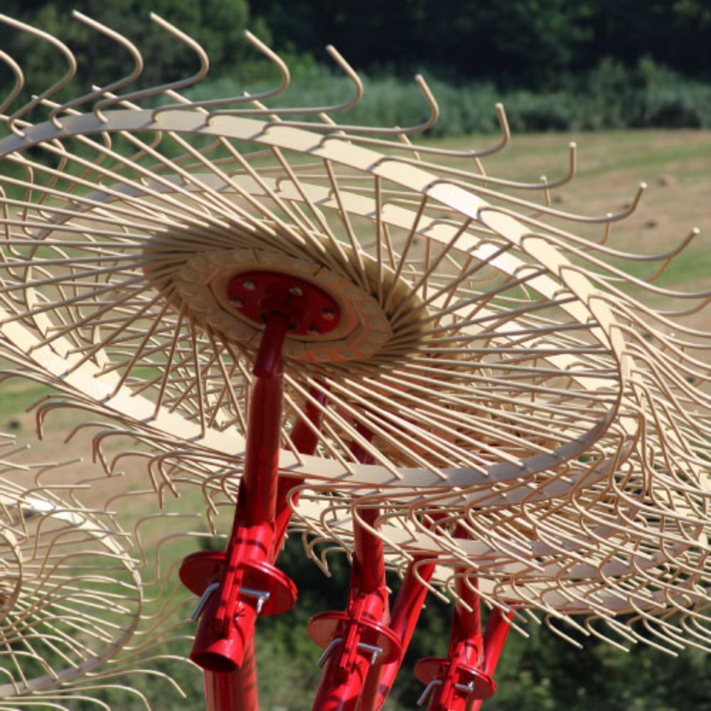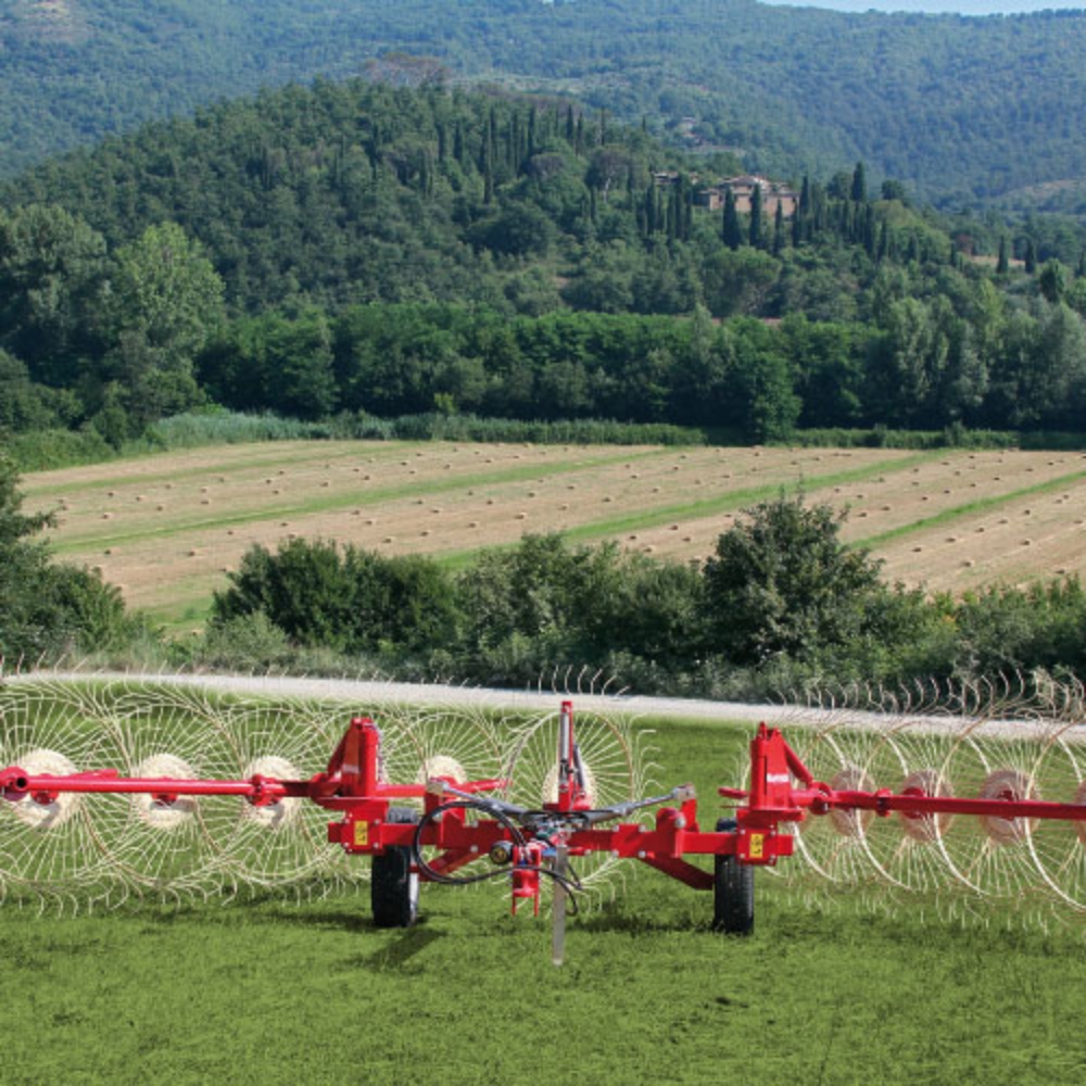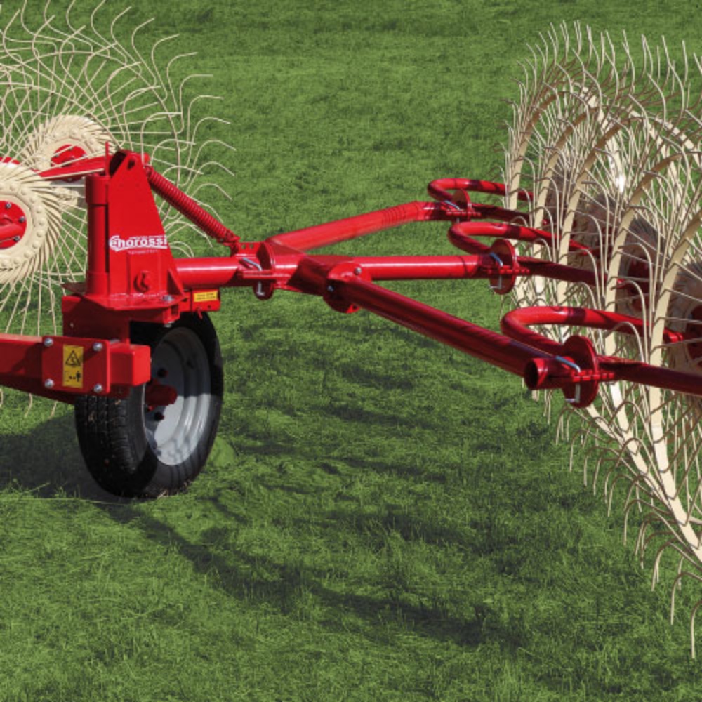 Enorossi caddy rakes are suitable for small extensions, and are ideal for uneven terrain. They are a simple to use, lightweight wheel rake, that ensures clean collection and an excellent windrow. Its wide wheelbase makes the machine stable during work and transport.