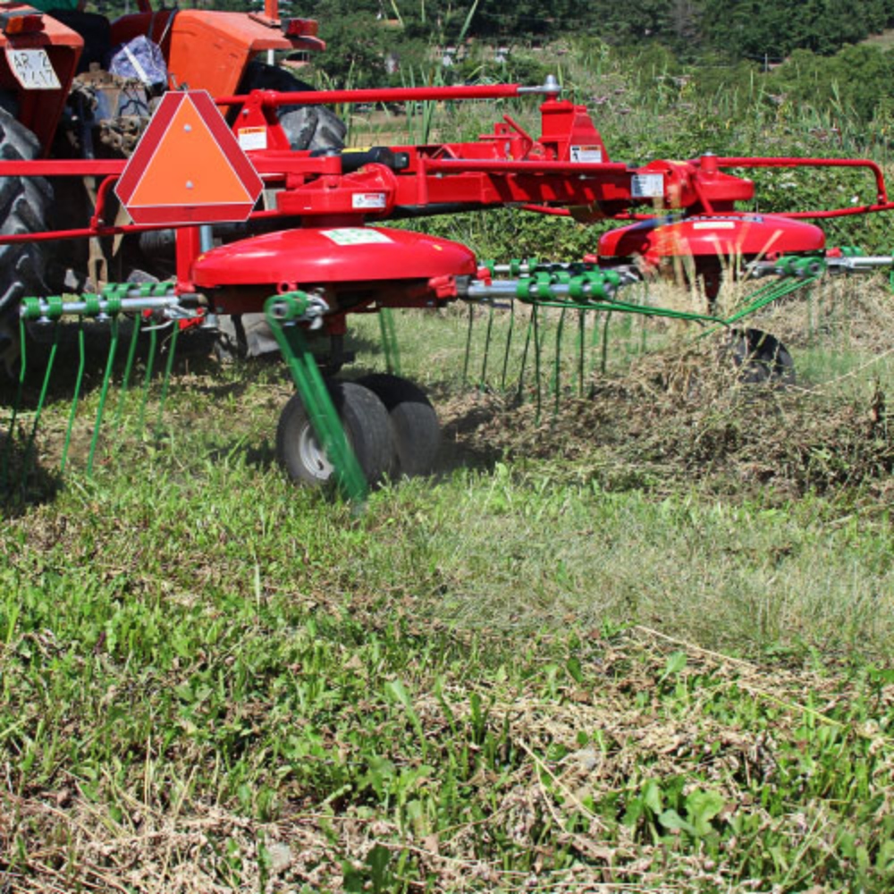 Enorossi double tedder rakes are ideal for tedding and raking. The DR420 is a multi-purpose machine that is ideal for the most demanding haymaking professionals as it can adapt to extreme conditions.