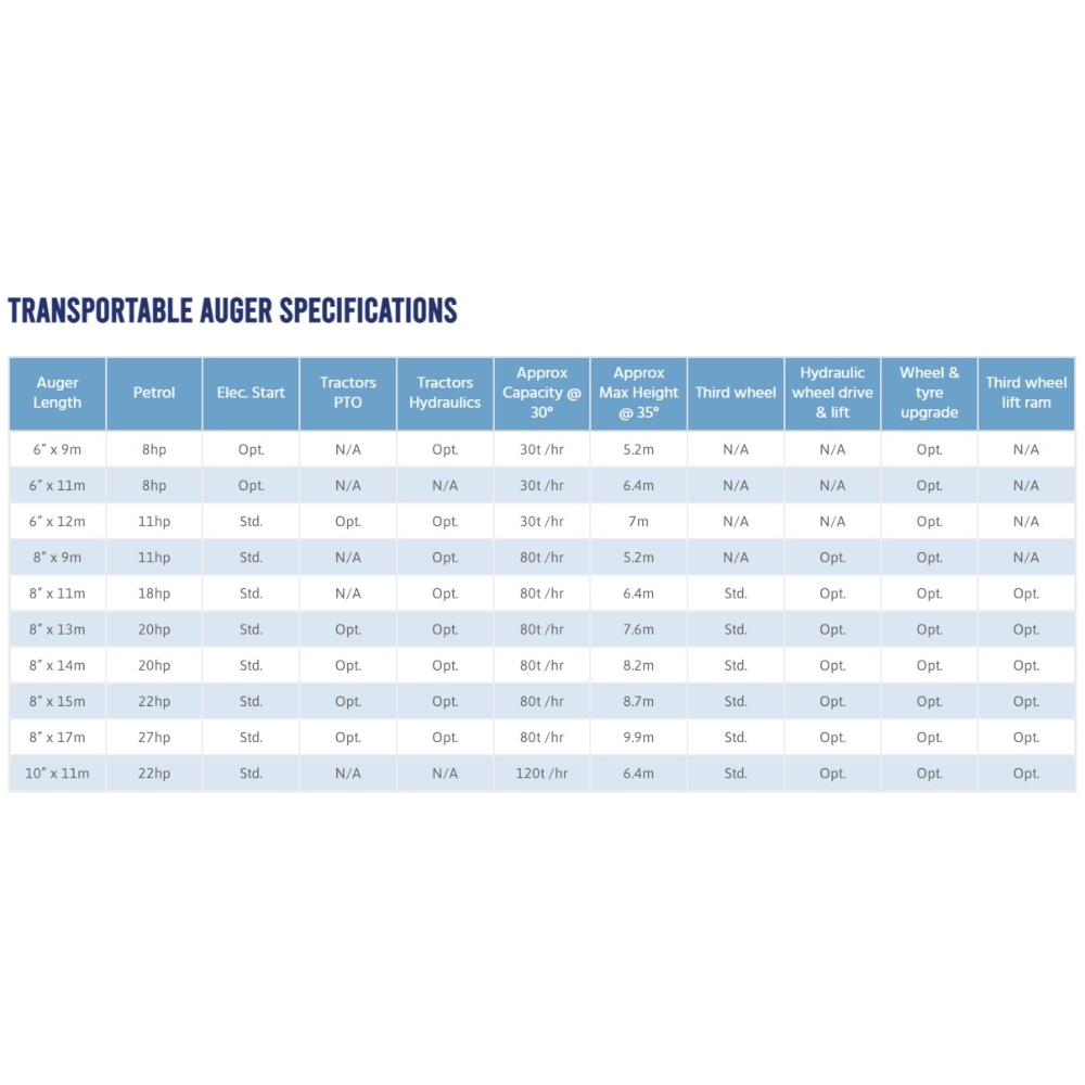 Grainline 6, 8 or 10 inch Transportable Augers Up to 17m