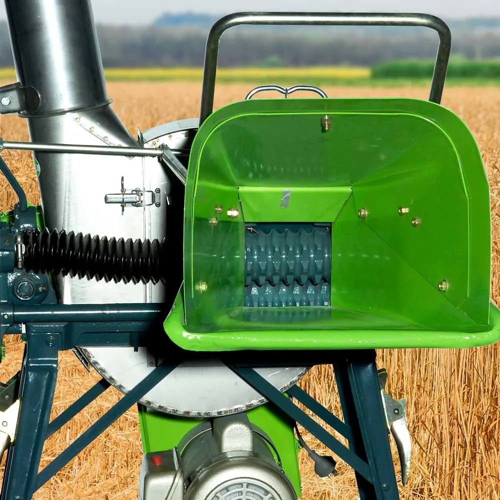 Our smallest model, the JAS1440, has a 1hp single phase motor with 3 pin, 240 volt plug that can plug directly into normal house hold power (no special power supply required). It also has the option of either a single bag stand or double bagging cyclone, which allows chaff to be blown directly into the bag, unlike other chaff cutters that drop the chaff onto the ground requiring time and labour to shovel it into bins or bags.
