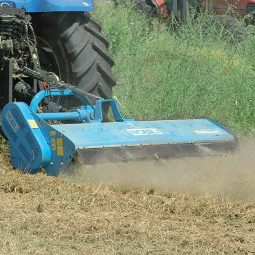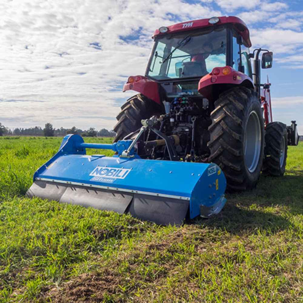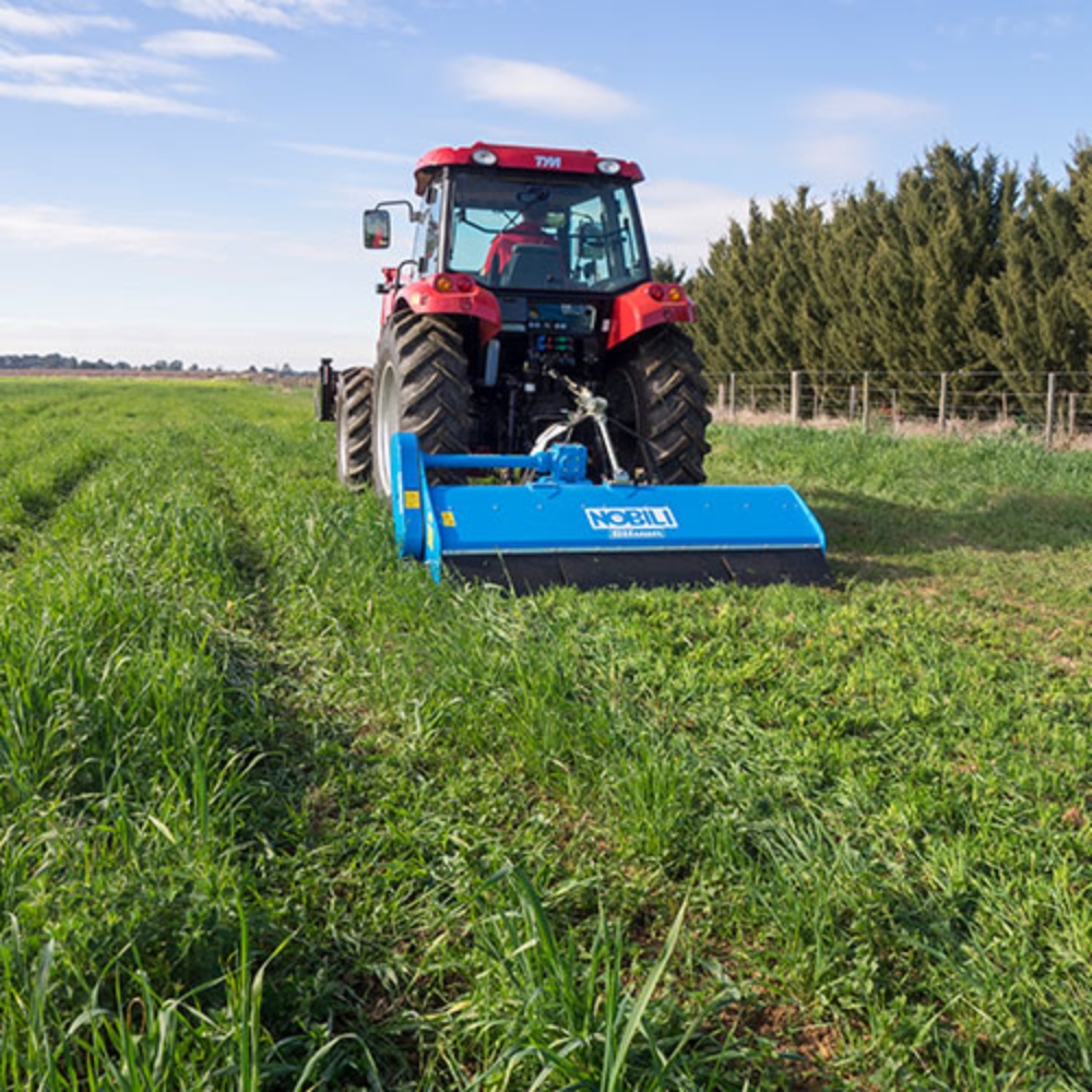 The Nobili rear mount BKE series of mulchers are a multi-purpose machine ideal for pasture topping with the option of side shift suited to tractors up to 100HP with cutting height maintained by adjustable skids.