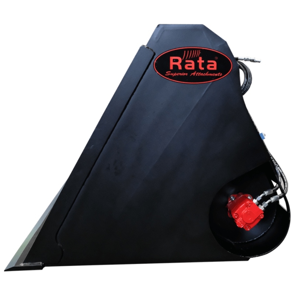 - Hydraulic motors on Rata Auger Buckets provide plenty of power to operate the auger, mix and feed product continuously without interruption. The motor is mounted in a recessed cavity to prevent contact and damage with other objects.