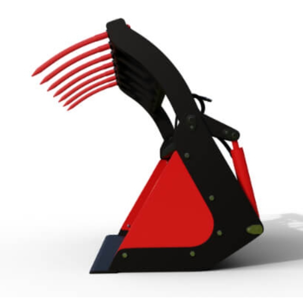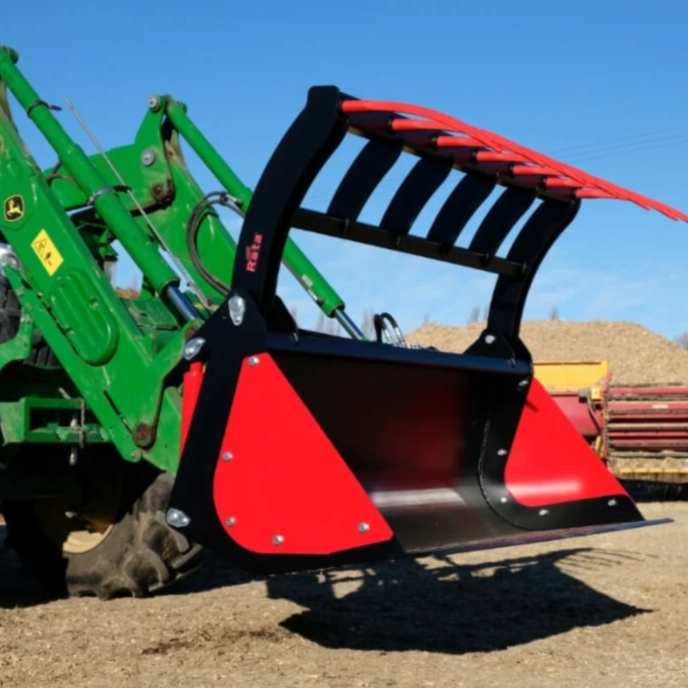 Rata bucket grabs are a universal tool for agricultural and industrial use, and can be made to fit to almost any front end loader. They are excellent for handling silage, minerals, earth, sand, shrubs, wood chips, rubbish, straw, manure and much more. The powerful twin hydraulic rams give this attachment the superior strength needed to move your material.