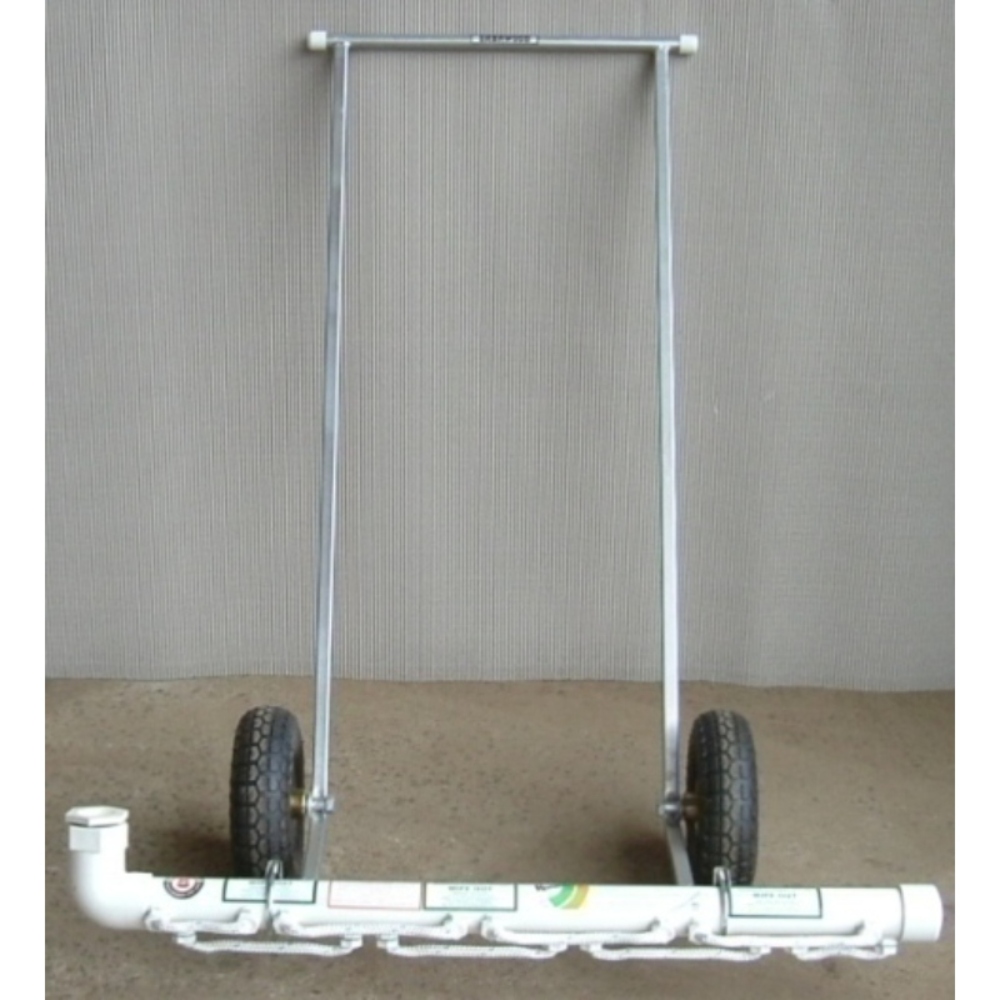 Hand operated frame, push along on 2 wheels. 1m tube with 2 Litre capacity.