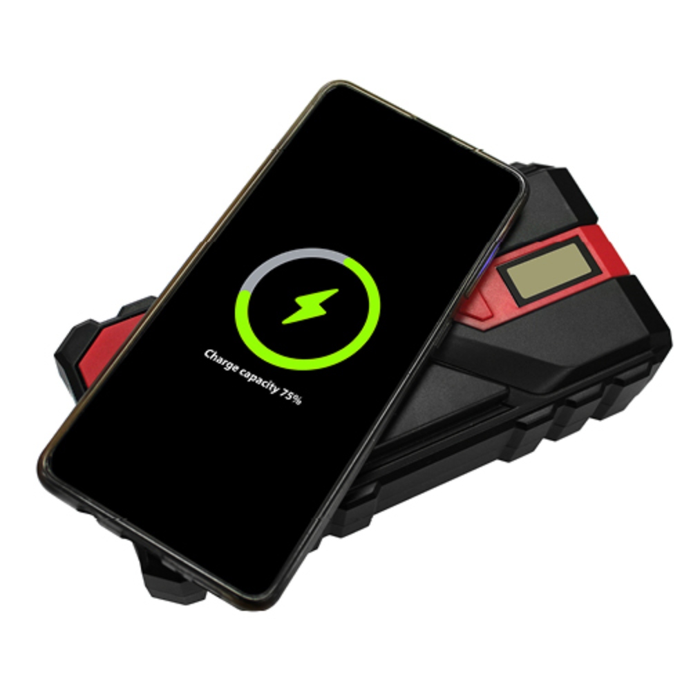850 Amps Jumpstart suitable to start Petrol engines up to 6L and 4L Diesel engines. Powerbank and 10W wireless charger convenient power boost for your accessories whilst away from mains power. Torch LED Flex light, 3 modes: light/flash/S.O.S. Carry bag, charger and smart battery clamps compact enough to fit in many vehicle’s glove boxes.
